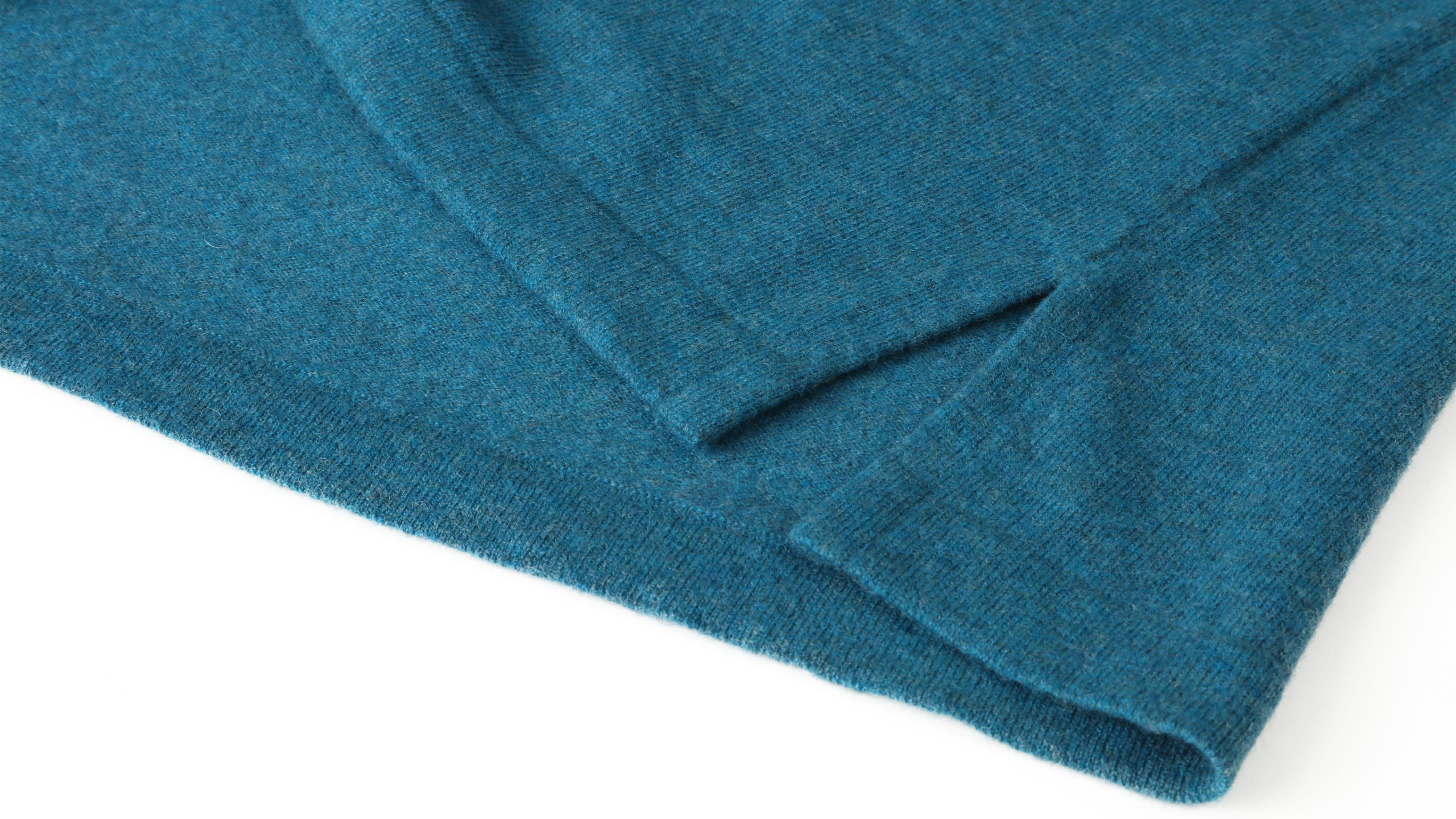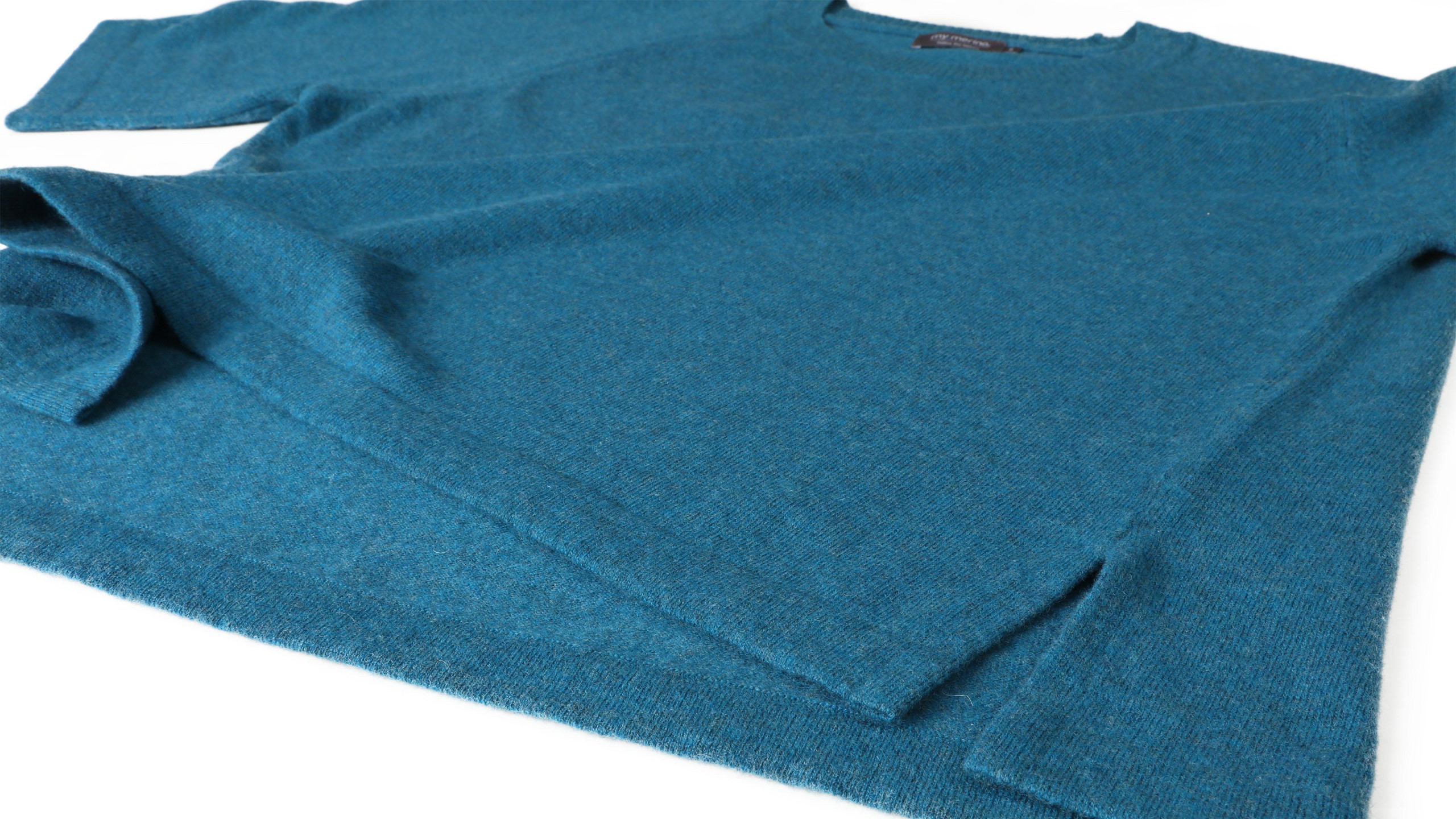 Hand-wash only with 30°C water. Use gentle soap and let soak for 15 min. Avoid hot water and harsh detergents. Dry first wet by rolling the sweater in a towel and pressing out as much water as you can. Repeat with the second towel if necessary. Don’t wring.
